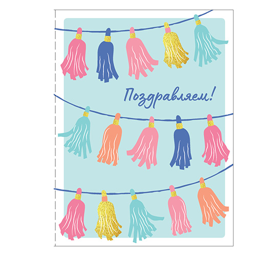 71099 Двойная открытка Код А Поздравляем с кисточками. ОТ