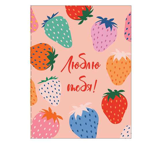 71100 Двойная открытка Код А Разноцветные клубнички. ОТ