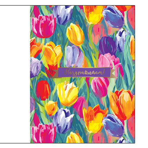 71128 Двойная открытка Код Б Цветы Поздравляем. VS