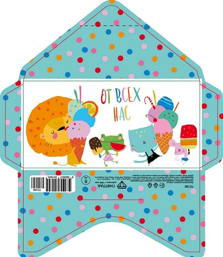 70196 Конверт для денег Код В Зверята с мороженым. ОТ