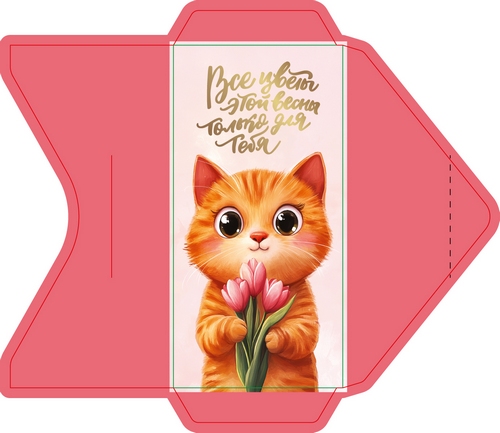 70259 Конверт для денег Код Д Рыжий кот с букетом. VS