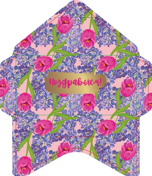 70262 Конверт для денег Код Д Розовые тюльпаны и сирень. VS