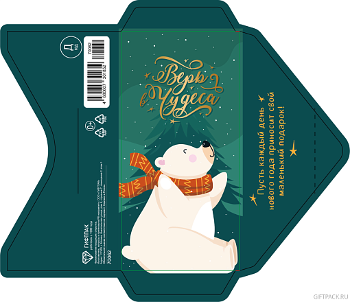 70062 Конверт для денег Код Д Белый медведь в шарфе. NG