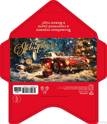 70063 Конверт для денег Код Д Красная машина и шампанское. NG