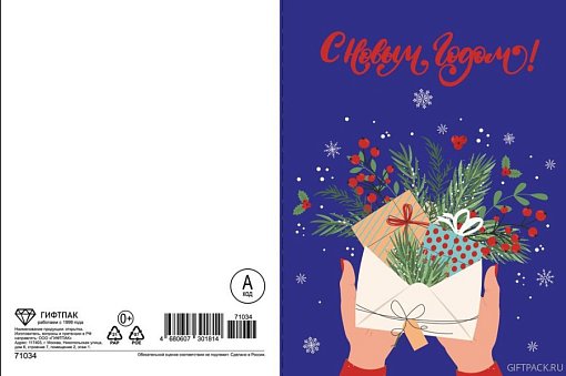71034 Двойная открытка Код А Конверт в руках на синем. NG