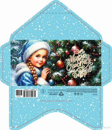 70174 Конверт для денег Код Д Снегурочка у ёлки. NG