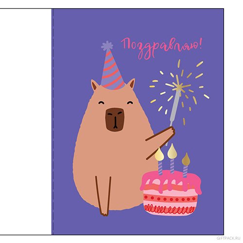71138 Двойная открытка Код Б Капибара с тортом. ED_4