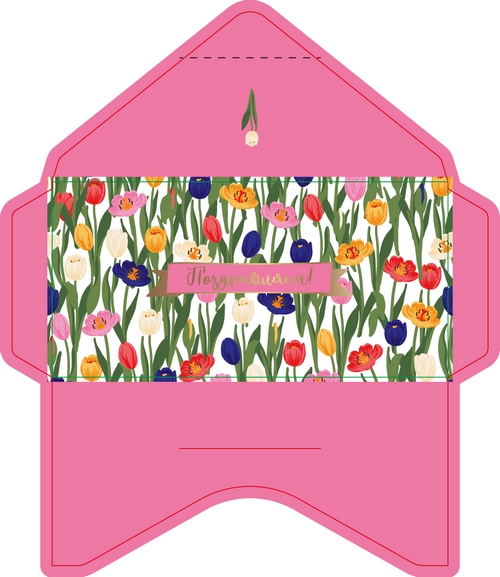 70265 Конверт для денег Код Д Цветы Поздравляем. VS