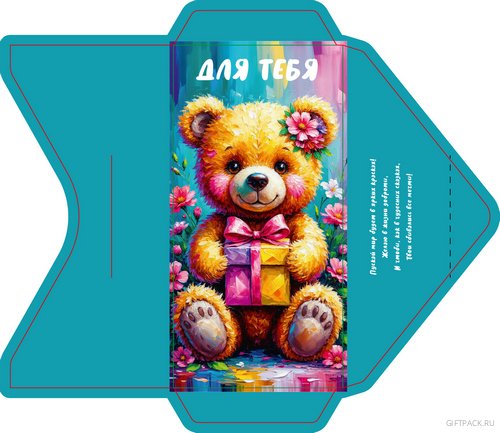70277 Конверт для денег Код В Мишка с подарком. ED_4