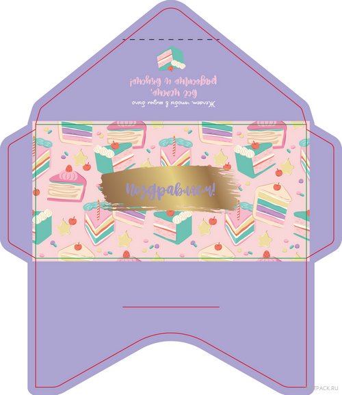 70283 Конверт для денег Код Д Поздравляем тортики. ED_4