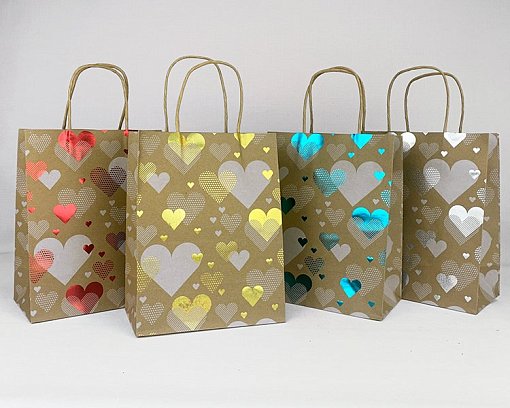 Сумка крафт бум.ручка Сердца металл 25*31*11 12 шт/уп 528 т.м.
