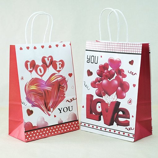 Сумка крафт бум.ручка СЕРДЦА 25*33*12 12 шт/уп 720 т.м.