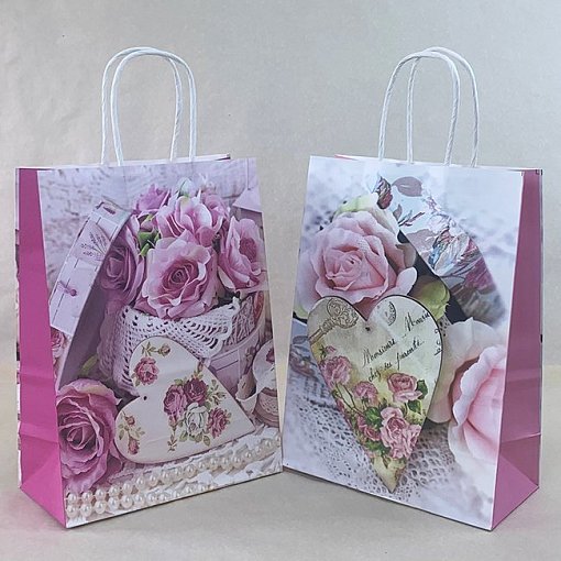 Сумка крафт бум.ручка СЕРДЦА 25*33*12 12 шт/уп 720 т.м.