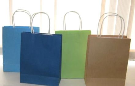Сумка крафт цветная асс. бум. ручка 18*23*8 12 шт/уп 600 т.м.