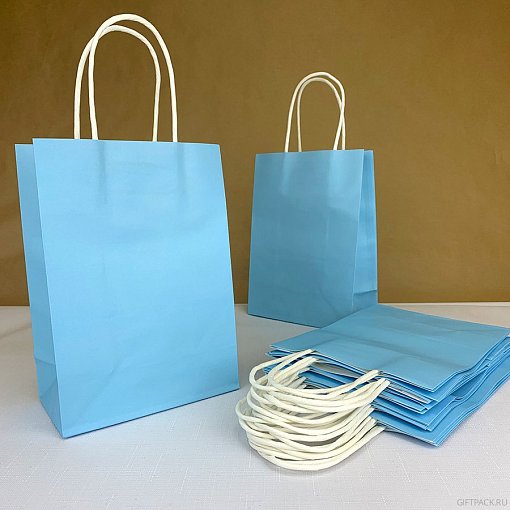 Сумка крафт бум.ручка ГОЛУБОЙ 15*21*8 12 шт/уп 960 т.м.