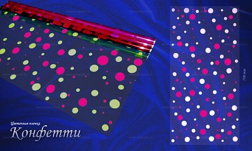 Пленка в ролике пр+цв.рис."Конфетти Вернисаж" яр.розов/желт 70см