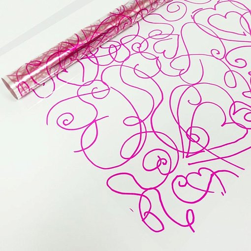 Пленка в ролике Сердца малиновые 40 мкм, 200гр 0,72*7,5м