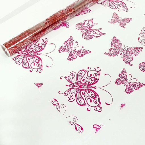 Пленка в ролике Бабочки малиновые 40 мкм, 200гр 0,72*7,5м