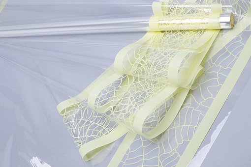 Пленка в ролике пр+цв.рис.Кайма листья цветные желтый нежно 70см 200гр