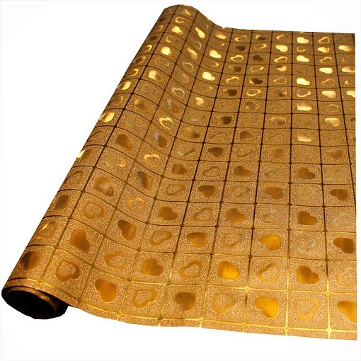 Пленка глиттер Сердца золотые в рулонах 50cm*4.5m