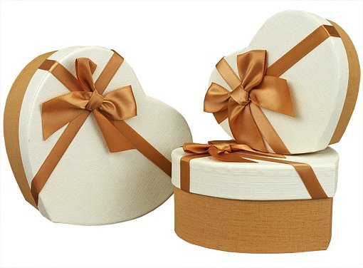 Коробка/набор из 3 шт. Сердца "Золотое с бантом" 15*13*7,2 см 60 т.м.