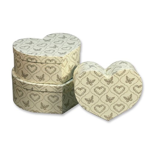 Набор коробок № 77 Сердца 3шт. Золотые сердца  29 х 24 х 12 см