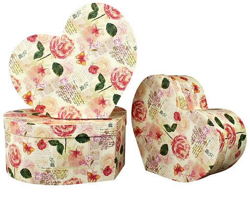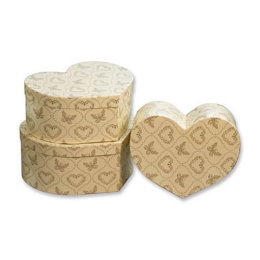 Набор коробок № 77 Сердца 3шт. Сердца и Бабочки 29 х 24 х 12 см