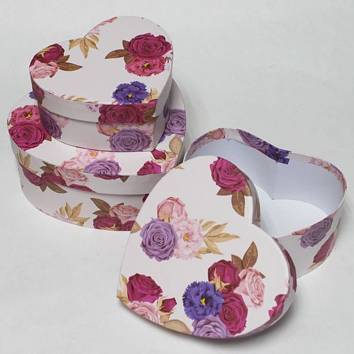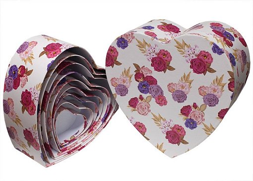 Набор коробок СЕРДЦЕ "Цветы" 33*32,3*14см 10шт./набор 6 т.м.