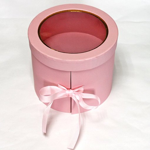 Коробка под цветы Цилиндр с окном Розовый 200*200*170 из 1 шт./ 18 т.м.