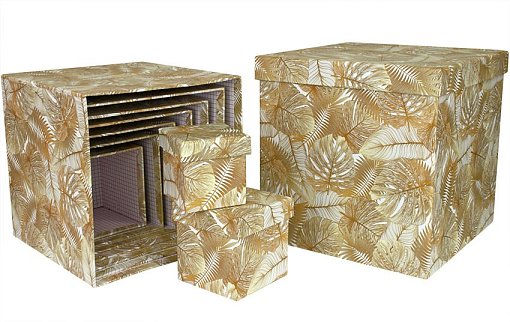Коробка/набор из 10 шт. КУБ "Папоротник золото" 26,5*26,5 4 т.м.
