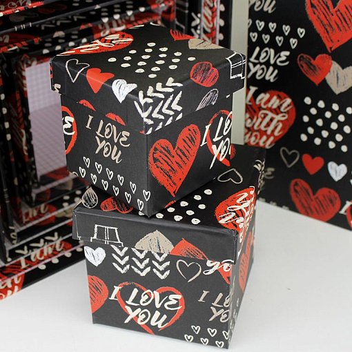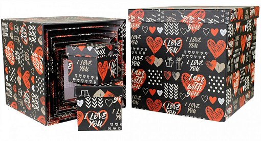 Коробка/набор из 10 шт. КУБ "Сердца" 26,5*26,5 4 т.м.