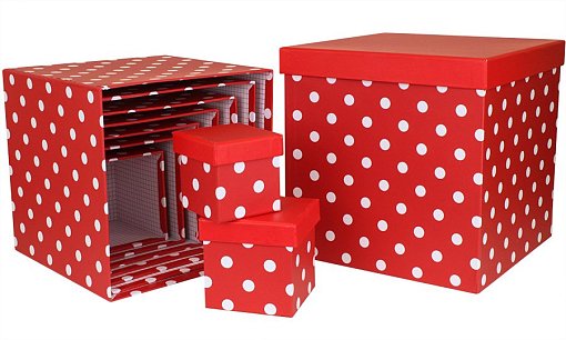 Коробка/набор из 10 шт.КУБ "Горох красный" 26,5*26,5 4 т.м.