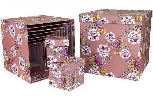 Коробка/набор из 10 шт.КУБ "Цветы на розовом" 26,5*26,5 4 т.м.