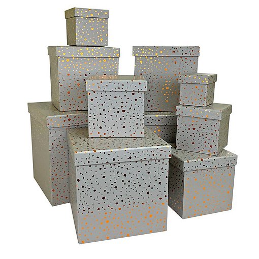 Коробка/набор из 10 шт. КУБ "Золотые капли на сером" 26,5*26,5 4 т.м.