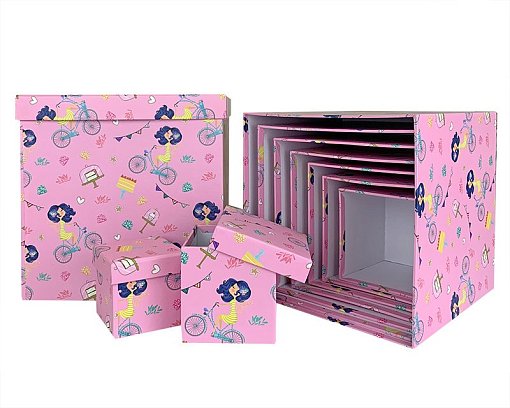 Коробка/набор из 10 шт. КУБ "Девочка на велосипеде" 26,5*26,5 4 т.м.