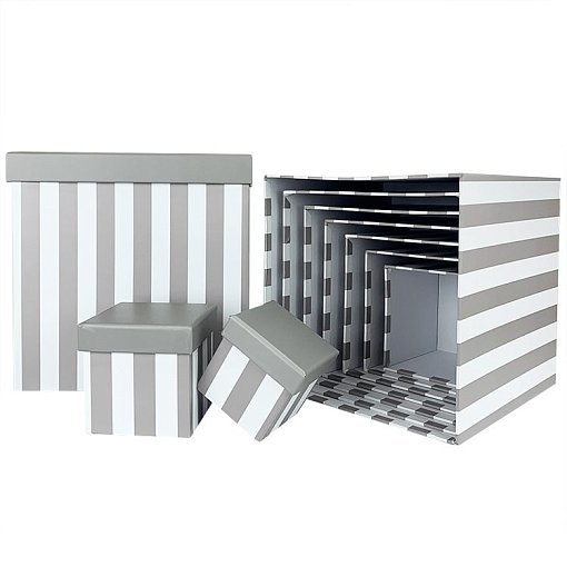 Коробка/набор из 10 шт.КУБ "Полосы серые" 26,5*26,5 4 т.м.