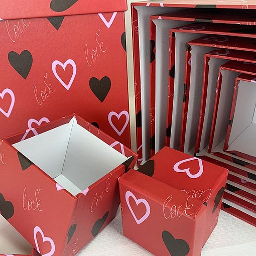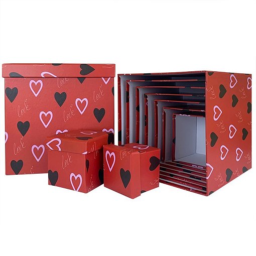 Коробка/набор из 10 шт.КУБ "Сердца" 26,5*26,5 4 т.м.