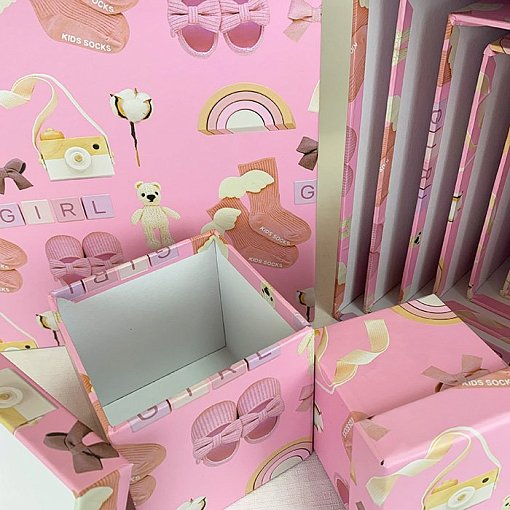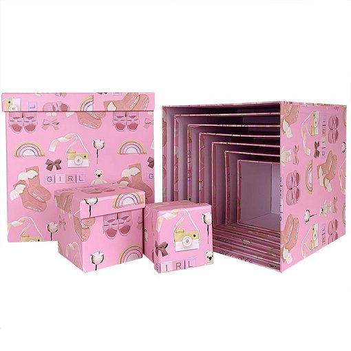 Коробка/набор из 10 шт.КУБ "Детские розовые" 26,5*26,5 4 т.м.