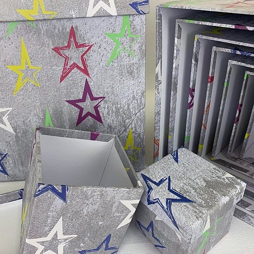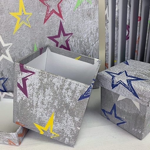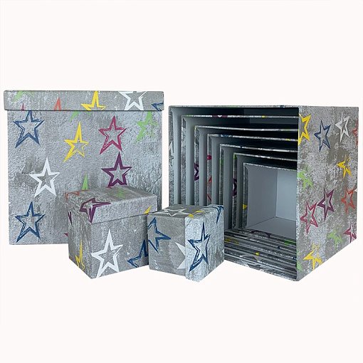 Коробка/набор из 10 шт.КУБ "Звёзды" 26,5*26,5 4 т.м.