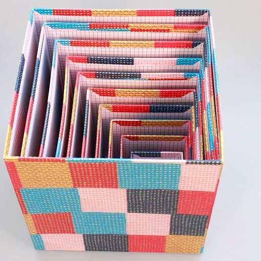 Коробка/набор из 10 шт. КУБ "Пэчворк" 26,5*26,5 4 т.м.