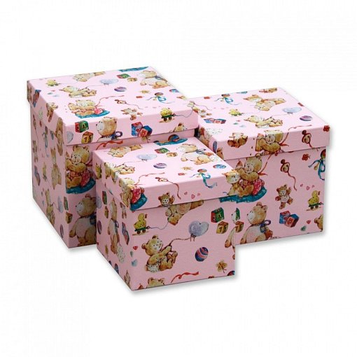 Набор коробок № 2 Кубы. Мишки на розовом 3шт" 16см*16см*16см