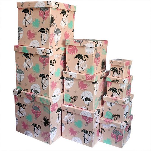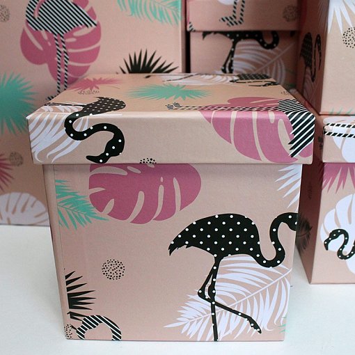 Коробка/набор из 10 шт. КУБ "Фламинго" 26,5*26,5 4 т.м.