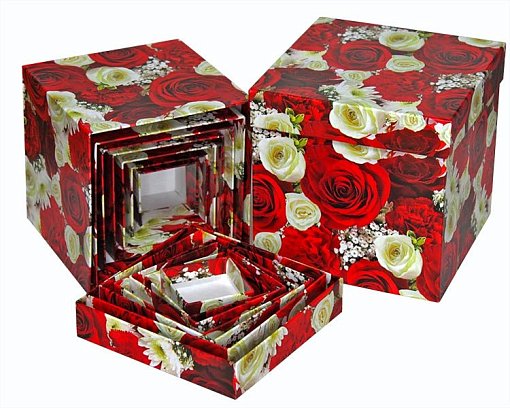 Набор коробок Куб. Цветы ассорти 8шт" 15,5см*15,5см*15,5см