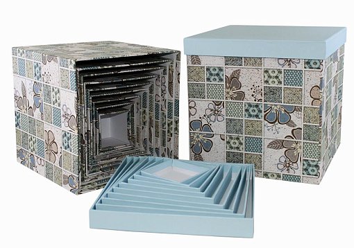 Коробка/набор из 10 шт. КУБ "Пэчворк" 26,5*26,5 4 т.м.