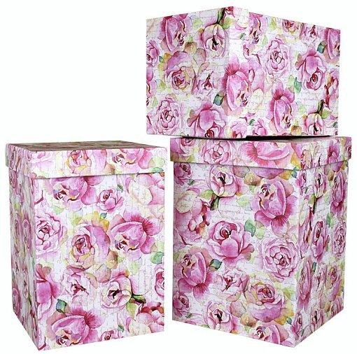 Набор коробок № 66 Куб высокий Оранжевые Розы 3 шт 18*18**25,5см