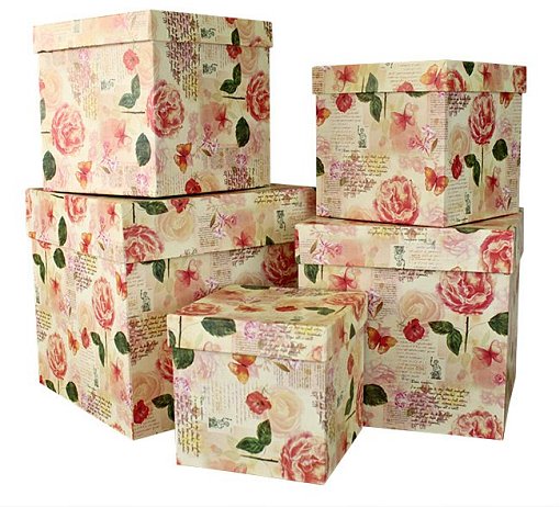 Набор коробок № 2 Кубы. Розы Оранжевые 5шт" 21см*21см*21см