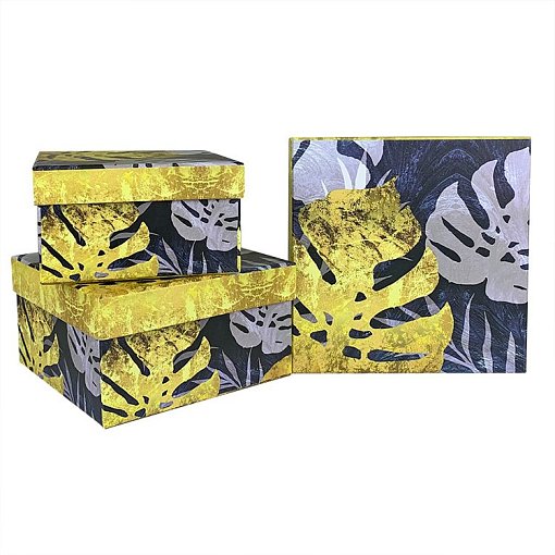 Коробка/набор из 3 шт. КВАДРАТ "Листья" 17*17*9,5см 36 т.м.
