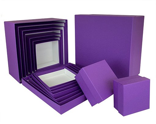 Набор коробок № 71 Квадрат 10 шт.Сиреневый КТ 28,2см*28,2см*15см