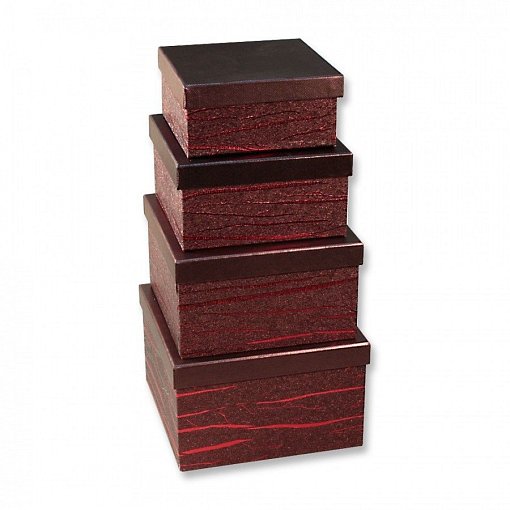 Коробка/набор "Квадрат вишневый с красн. полосой" 4 шт 12 т.м. 23*23*14