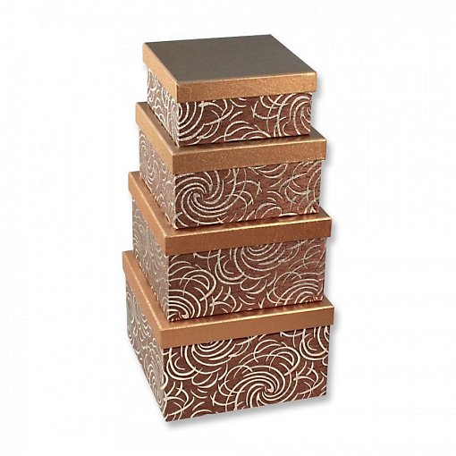 Коробка/набор 2156-7 "Квадрат коричневый.с сереб завитком 4 шт 12 т.м. 23*23*14